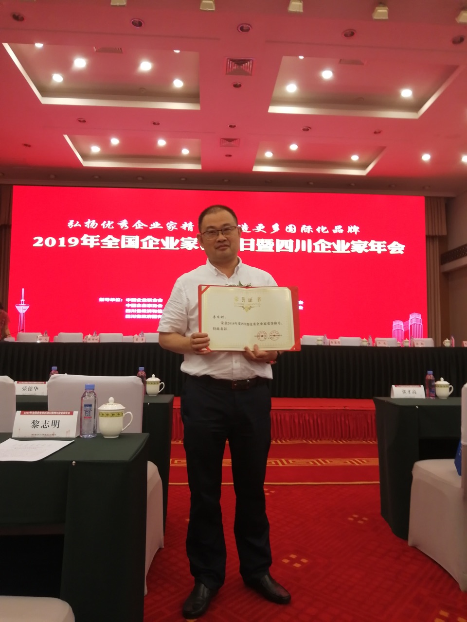 6月12日,藍鼎環(huán)保受邀參加由四川省企業(yè)家協(xié)會、四川省企業(yè)聯(lián)合會主辦,中國企業(yè)聯(lián)合會、中國企業(yè)家協(xié)會、四川省經(jīng)濟和信息化廳、四川省政府國有資產(chǎn)監(jiān)督管理委員會指導(dǎo)舉辦的《2019年度全國企業(yè)家活動日暨四川企業(yè)家年會》活動,藍鼎環(huán)保董事長李自樹被授予“四川省優(yōu)秀企業(yè)家”光榮稱號。