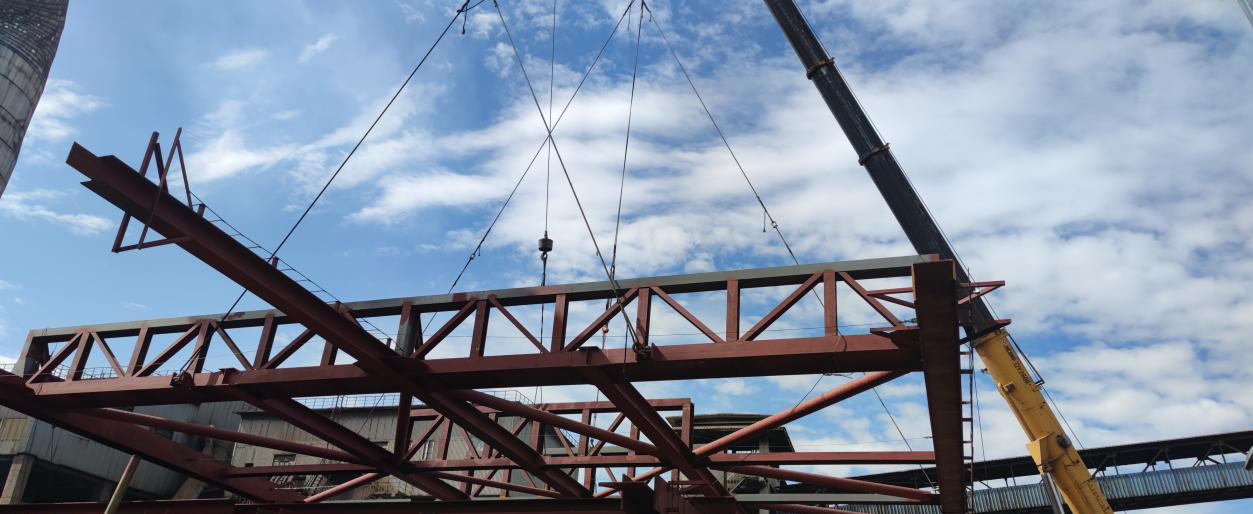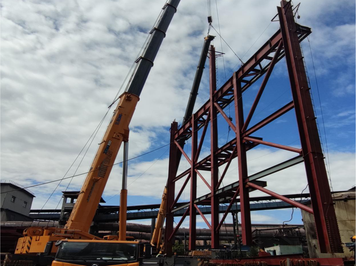 西昌燒結超低改造項目一期脫硝第一次立裝框架圓滿完成