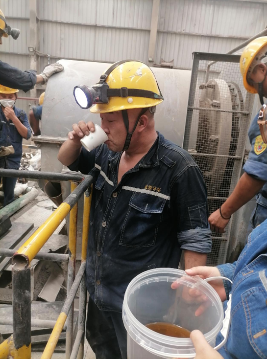 7月17日15時,西昌市氣溫已升至35 ℃。在生產(chǎn)區(qū)球磨機(jī)檢修平臺,機(jī)器轟鳴、焊花四濺。西昌藍(lán)鼎環(huán)保人力行政部李小方提著保溫桶,沿著滾燙的鋼梯來到作業(yè)點,為正在揮汗檢修的員工送上剛從冰柜取出的“定制涼茶”。
