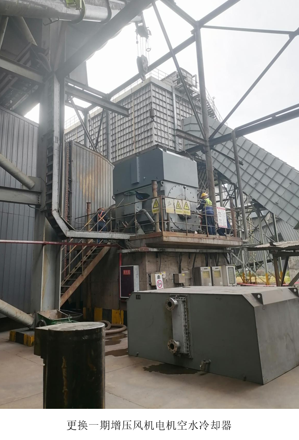 西昌藍(lán)鼎在常規(guī)運(yùn)行監(jiān)測(cè)中發(fā)現(xiàn)一期6000千瓦增壓風(fēng)機(jī)電機(jī)空水冷卻器電機(jī)定子繞組溫度接近警戒溫度100攝氏度,存在安全隱患。公司副總經(jīng)理明確指示,要及時(shí)組織更換,徹底消除設(shè)備過熱風(fēng)險(xiǎn),確保生產(chǎn)系統(tǒng)安全平穩(wěn)運(yùn)行。4月1日,西昌藍(lán)鼎首次順利完成該電機(jī)空水冷卻器的更換工作。